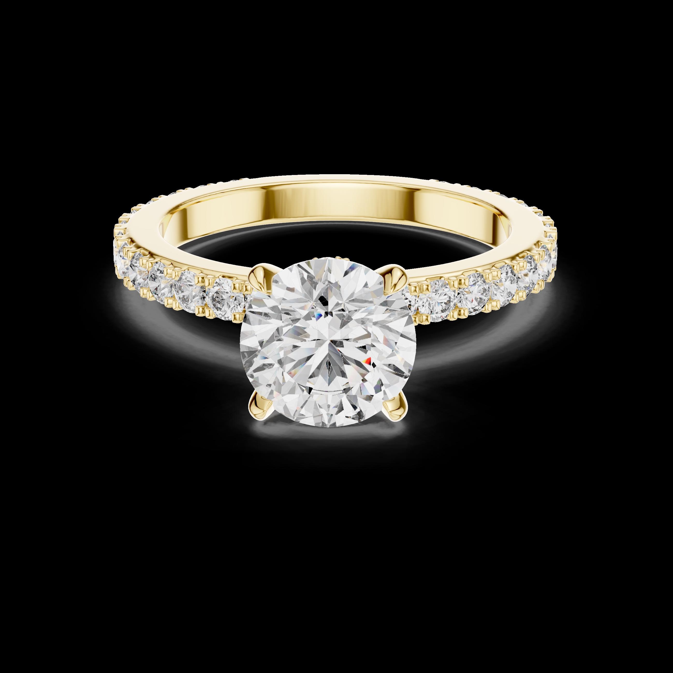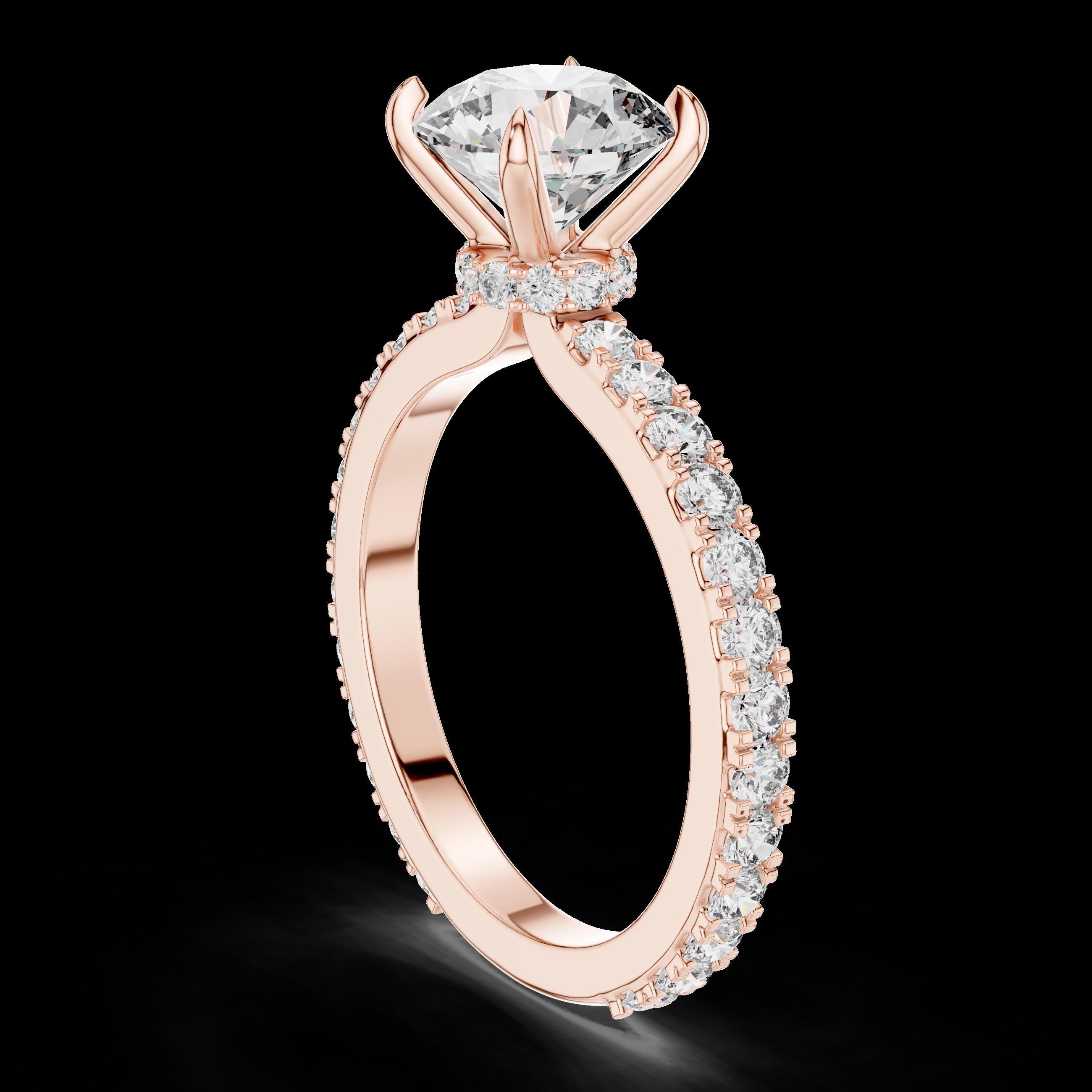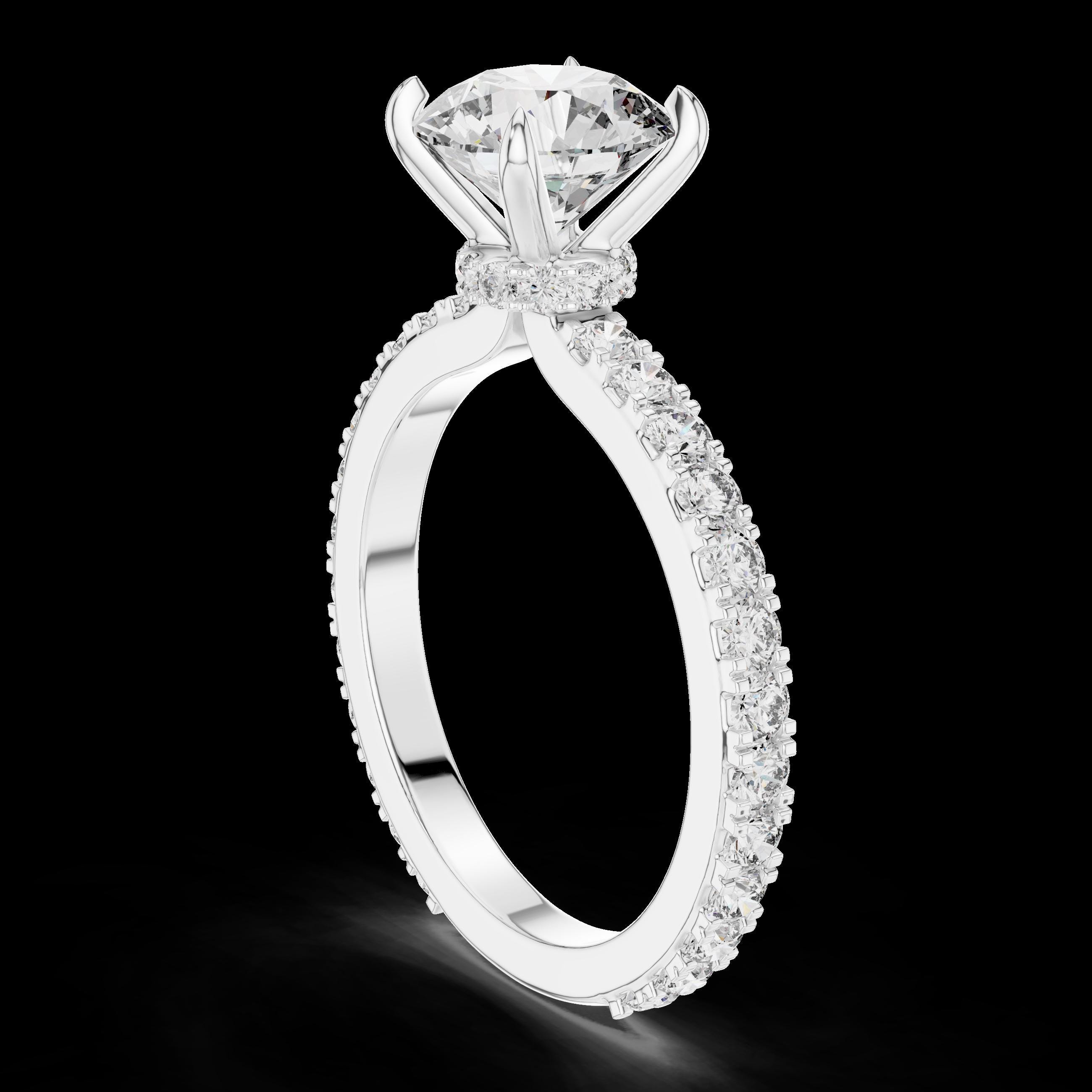 A timeless statement of love and sophistication, this lab-grown diamond engagement ring combines brilliance and elegance in perfect harmony. The dazzling round brilliant center stone is elevated by a micro pave band, ensuring brilliance from every angle. Crafted with precision, this ring is a classic treasure designed for modern romance.