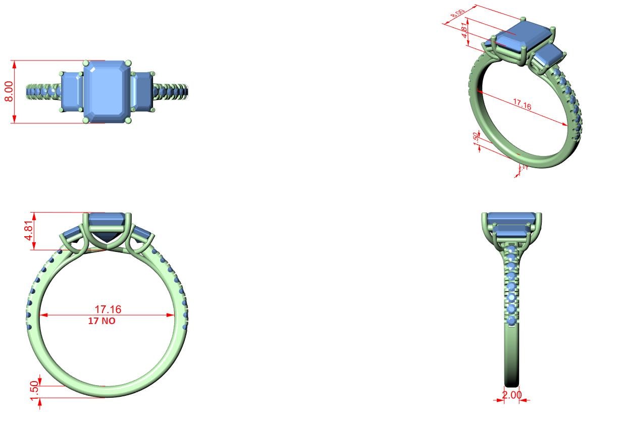 → Center Stone: 1.75 CT Emerald Cut (8.00×3.00mm)